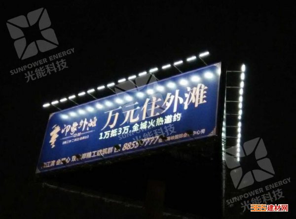 由于我公司专利的低功率的LED灯再搭配太阳能光伏组件,达成完美绝配,实现了单立柱广告牌免拉线,免审批,0电费。因此现在我们的LED太阳能光伏照明越来越受到大家的青睐。