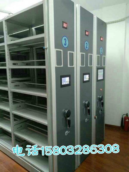 智能型密集架可以做到电动开关每一列架体,在每列架体的面板上都装有电机启动按钮,当管理人员需要打开任何一列架体,只要轻按开启按钮,架体就可自动打开。如果停电的时候,也可以用手摇动摇把,手动开启密集架。