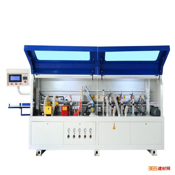 1. 涂胶压紧:通过特殊的结构,使封边板材和封边材料双面涂胶均匀,保证粘合力更加牢固。2.前后齐头:通过精密的直线导轨运动,采用高频高速电机快速切削结构,保证切断面平整光滑。3.粗修、精修:均采用高频高速电机结构,保证修边的板材上下部分的平整光滑。用于修去加工板材封边条上下多余的封边材料。精修刀为R形刀。主要用于板式家具的。PVC、亚克力封边条,以0.8mm厚以上的封边条为佳。4.刮边:用于消除修边非直线运动的切削过程所引起的波纹痕迹,使板材上下部分更加光滑整洁。5.开槽:用于衣柜侧板、底板等直接开槽,减少裁板锯的工序更方便快捷;也可用于门板铝包边的开槽。6.抛光:用棉质抛光轮清理加工好的板材,通过抛光使封边端面更加光滑。