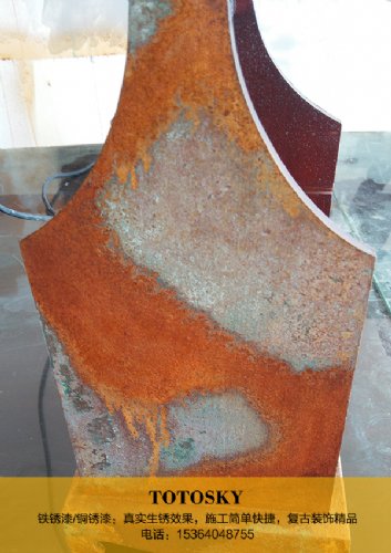 TOTOSKY艺术铁锈漆生锈漆,无论在触觉或者视觉上都与真实铁锈一般无二,细腻的纹理还原铁锈的本色,细微的表层凹凸手感,形成真实金属锈蚀的自然质感,彰显复古风尚,表现形式深沉,历史文化气息浓重!