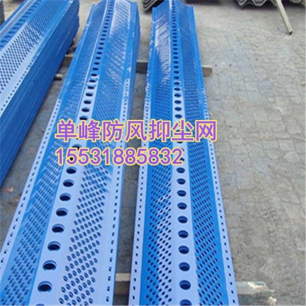 防风抑尘网是利用空气动力学原理,按照实施现场环境风洞实验结果加工成一定几何形状、开孔率和不同孔形组合挡风抑尘墙,使流通的空气(强风)从外通过墙体时,在墙体内侧形成上、下干扰的气流以达到外侧强风,内侧弱风,外侧小风,内侧无风的效果,从而防止粉尘的飞扬。该技术在国内处于*地位。挡风抑尘墙由独立基础、钢结构支撑、挡风板三部分组成。