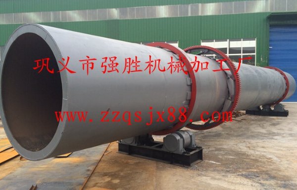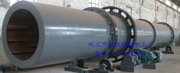 随着烘干机圆筒的转动物料受重力作用运行到较底的一端。湿物料在筒体内向前移动过程中,直接或间接得到了载热体的给热,使湿物料得以干燥,然后在出料端经皮带机或螺旋分级机送出。在筒体内壁上装有抄板,它的作用是把物料抄起来又撒下,使物料与气流的接触表面增大,以提高干燥速率并促进物料前进。载热体一般分为热空气、烟道气等。载热体经干燥器以后,一般需要旋风除尘器将气体内所带物料捕集下来。如需进一步减少尾气含尘量,还应经过袋式除尘器或湿法除尘器后再放排放。