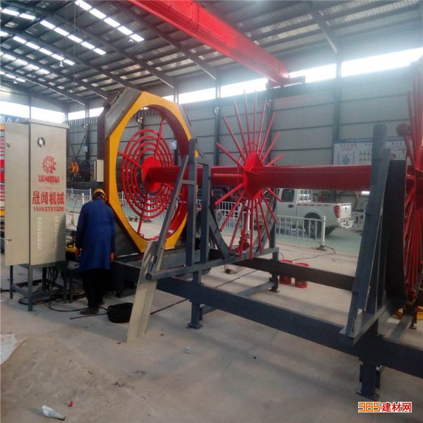 ◆设备描述: 钢筋笼主筋通过自动上料到分料架;分料架的主筋需人工穿过固定盘导管到达移动盘导管,并经过电动工具将主筋固定在移动盘导管上;盘筋(绕筋)经过矫直器后焊接在主筋上;然后开始正常焊接,固定盘及移动盘同步旋转且移动盘按照预先设定的速度(行走速度可根据操作工人的熟练程度经行调整)前进,同时进行焊接,从而生产出成品钢筋笼。 钢筋笼设备引进欧洲技术,钢筋笼直径误差可控制在1cm内;1米长度的钢筋笼盘筋间距误差可控制在5mm内;生产效率是人工制作钢筋笼的3-4倍,设备操作工人只需要3-5人,生产出来的成品钢筋笼主筋、盘筋间距均匀,焊点饱满、牢固,可实现监理*。 - 山东晟闻机械设备有限公司