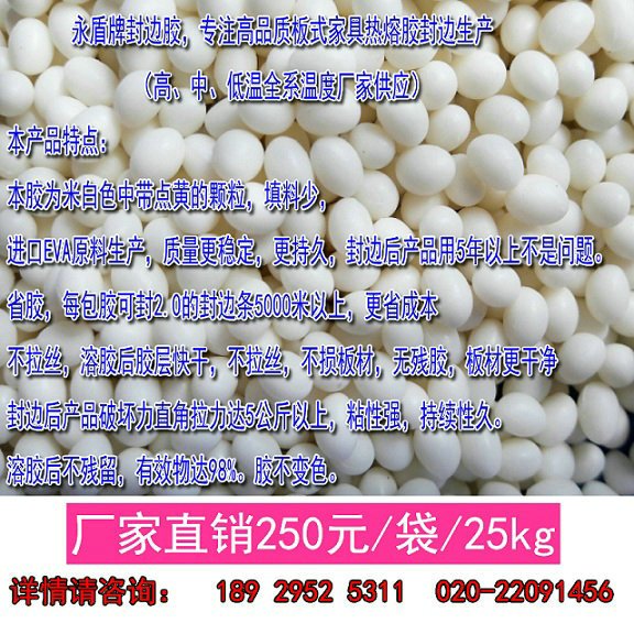 一.性质:普通封边热熔胶,熔化性能良好,*环保,具有良好的弹性及热稳定性。