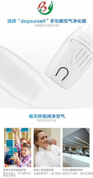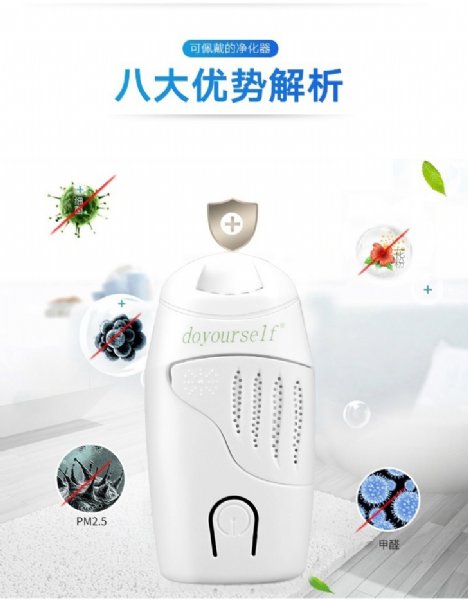 苏州博悦曼环保科技有限公司研发生产的博悦曼品牌“Beyourself”系列产品-空气净化器。此款产品可以满足外出时的随身佩戴空气净化,也可以满足小空间空气污染的祛除,还可以满足在遇到局部严重污染时使用者能呼吸到经过PM2.5过滤后的空气,保护使用者的身体健康。由于有负离子的存在,此产品具有防电脑辐射,提高人身体免疫力,改善睡眠,帮助疾病恢复等,尤其对花粉过敏。鼻炎患者,二手烟,孕妇,呼吸系统敏感者有显著的保护作用。