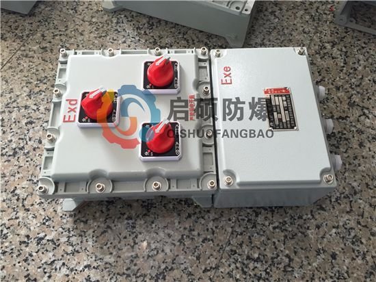 现场防爆启动开关箱外壳采用ZL102铝合金压铸或钢板焊接成型,表面高压静电喷塑,不锈钢外露紧固件;