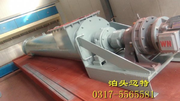 螺旋输送机是本公司专门为立磨研制的给料装置。例如:矿渣(水渣)、粉煤灰、钢渣等,目前只用于矿渣粉料输送。由于当前旧的矿渣磨喂料方式是采用翻板锁风阀,物料通过溜管进入磨机中心时