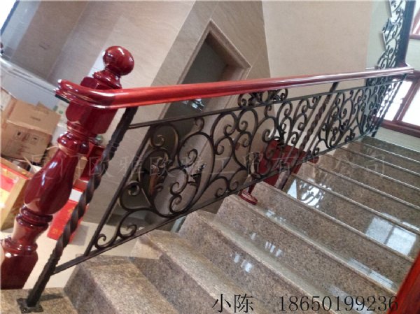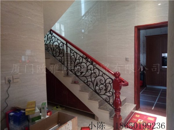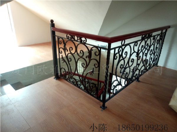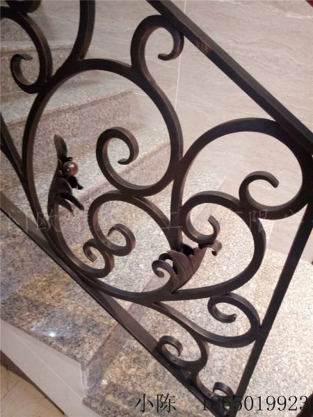 定制oya-l-002欧式铁艺楼梯扶手 纯手工锻打弯花