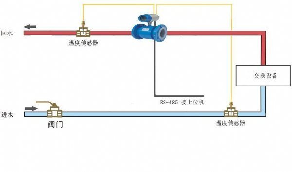 中央空调计量表利用法拉第电磁感应原理测量流量,流量传感器的流量信号结合系统中配对温度传感器检测的供水回水温度信号,就能计算、累积、存储和显示热交换回路中吸收或释放的热量(冷量)热量以累计形式显示,单位kWh,*大显示8位
