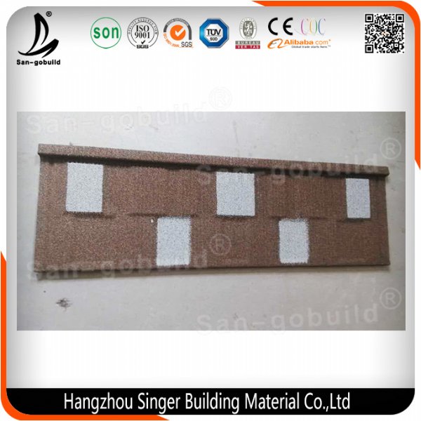 还有一种新材料是圣戈尔金属瓦(杭州圣戈尔彩石金属瓦),是镀铝锌钢板为基材,表面以彩色玄武岩颗粒处理的新型高科技瓦材,圣戈邦彩石金属瓦不仅仅有了传统瓦片的厚重感,还轻质,下雨无噪音,可以远距离运输,还不会破损。近些年,圣戈尔金属瓦在陡屋面、高层建筑,轻型钢木结构房屋、旧房子平改坡等项目应用越来越多。有兴趣可以咨询一下习惯信息 - 杭州圣戈尔建筑材料有限公司