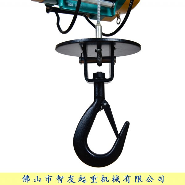 适用于工程吊挂,工厂吊重作业,土木水电配管装设,仓库出入货等;用途十分广泛。钢丝绳电动葫芦特点:马达系统:采用工业级高效串激式碳刷马达;有两款单项电压选择配置;漆包线耐热等级高达180度;为长时间起重特别设计。刹车系统:独家专利机械棘爪式齿轮刹车与控制器短路电阻刹车,双刹车系统;采用高磨擦系数盘片式浸油铜片刹车,完全不需要调整;停电或故障立即刹车制动,安全满分,高使用寿命。安全系统:钢索过捲上限时自动停止;钢索逆捲时自动停止安全放心。电控系统:采用直接式控制,省去繁琐电路,维修方便,故障率低,安全稳定;控制开关与电源线采取分离式快速接头,携带方便,无电线纠缠烦恼。钢索规格:采用进口钢丝,4倍的安全系数。齿轮系统:使用高效率之斜角传动式减速齿轮;合金热处理齿轮,强度高于额定吊重的4倍。主体外壳部分:马达本体与齿轮箱为铝合金金压铸一体成型,韧度强。计算机CNC加工精密度高,噪音低、运转顺畅;采用汽车级粉体烤漆,外形美观;结构紧凑轻巧。上下钩组:使用合金钢热锻造成型,强度高安全系数4倍。 - 佛山市智友起重机械有限公司