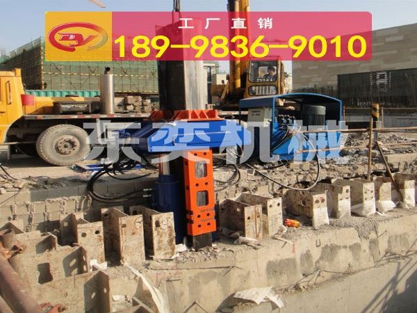 工作原理: 工法型钢拔桩机利用其夹桩器夹住桩头,液压缸强制顶压夹桩器,使之向上顶升一段距离,将桩逐段拔出,适用在粘土、砂土或含少量砾石的土层中拔工字钢或型钢桩。