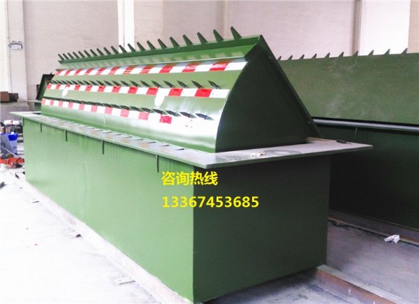 路障机为主;路障机主要分为带毛尖路障机、不带毛尖路障机二种;主要用于控制道路车辆通行的设备,可以与道闸控制系统等配套使用,也可以单独使用;为敏感区域防止非允许车辆强行闯入而专门设计研发的,具有很高的实用性、可靠性及安全性;其主要是为敏感区域防止非允许车辆强行闯入而专门设计研发的;根据不同客户的不同的需求,具有多种配置方式可供用户选择,可以满足各种客户的功能要求;