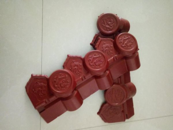 三通瓦:厚度:3.0±0.1 长度:280+200×2 安装在三个相交屋面交汇处,用于链接相交的三个脊瓦。