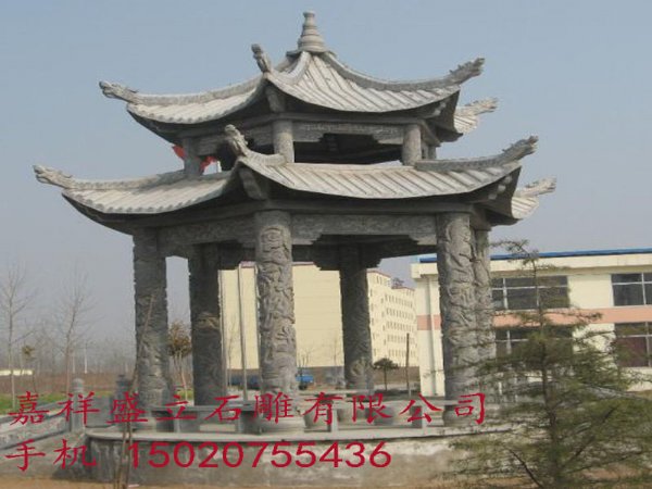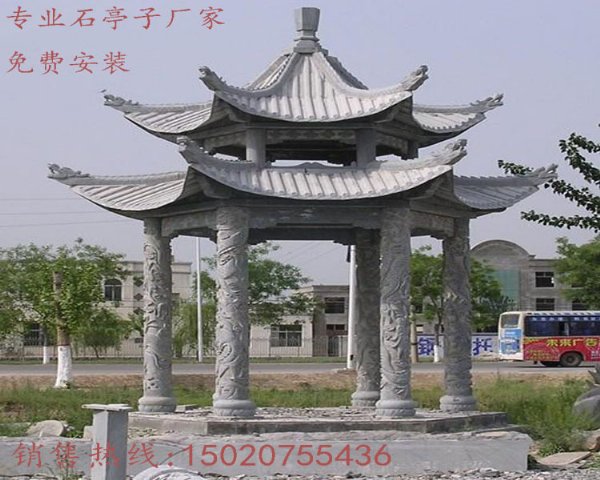 一般石雕凉亭中会配有石桌石凳工人们休闲。 石雕凉亭的好处多多,但它又该如何分类呢 ?下面由石雕凉亭厂家为您解说。 *初的凉亭,我们可以参考影视剧中的历史剧,我们也看到过凉亭,那种凉亭是由木头和稻草搭建而成的,一般是用来做驿站来使用,人们在路途之中遇到,会下马休息喝茶。而现在人们建造凉亭的技术已经逐渐成熟,人们开始采用更加坚固的材质来搭建凉亭,*的当然是大理石,因其天然的色彩,而又不失牢固的特性,成为建造凉亭的*材质。 现在的凉亭分类很多,但大致上我们还是能区分开来的,中式的凉亭一般是四角、六角、八角的凉亭,因其材质的不同,石亭子又可以根据材质来命名:汉白玉凉亭、晚霞红凉亭、花岗岩凉亭。也可以根据亭子的构造来命名:四角凉亭、六角凉亭、八角凉亭。