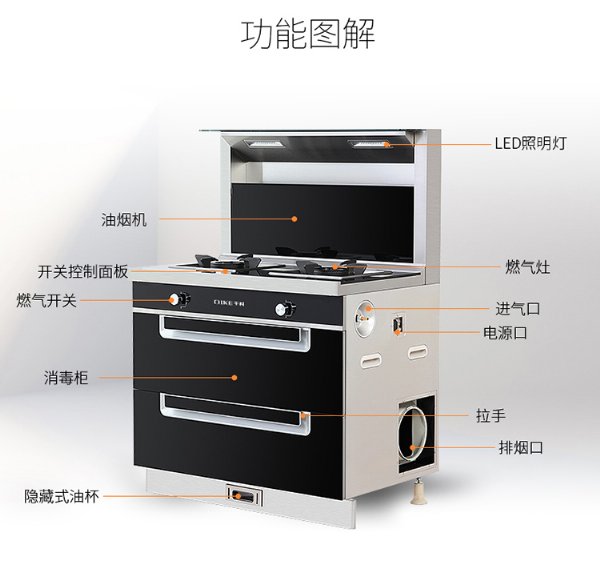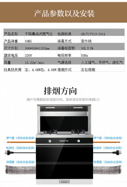 商品名称:千科(QIKE) JJZ-QK900-K2大容量集成灶侧吸下排免拆洗强劲吸力消毒柜一体式套 黑色