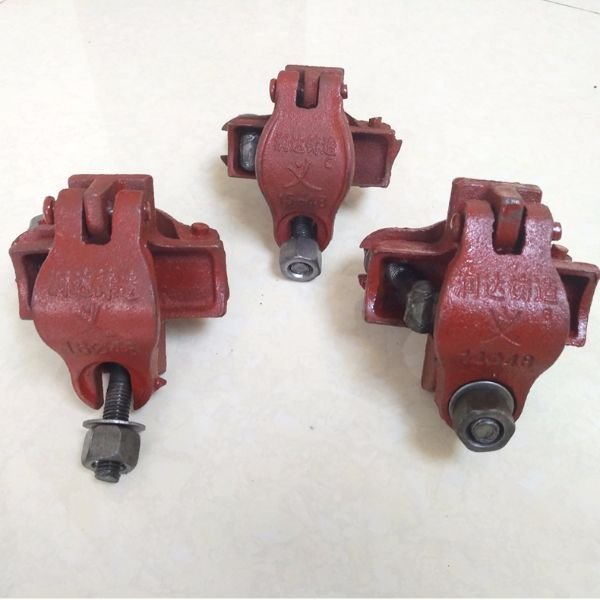2、旋转扣件:用于两根任意角度钢管交叉联结紧固。也就是脚手架的剪刀撑和高层建筑所用钢管脚手架双面柱的联结扭力距和直角扣件相同。