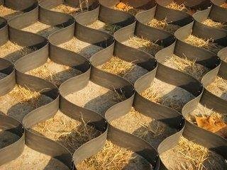 土工格室是由强化的hdpe片材料,经高强力焊接而形成的一种三维网状格室结构。一般经超声波针式焊接而成。因工程需要,有的在膜片上进行打孔。