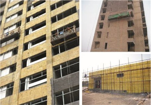 外墙岩棉板,以玄武岩为原料,经高温融化后,采用四辊离心制棉工序,可将玄武岩棉高温溶体甩拉成4~7μm的非连续性纤维,再加入一定量的粘结剂、防尘油、固化、切割等工艺,再根据用途制成不同密度的系列产品。岩棉适于建筑、石油、冶金、国防等行业,是管道贮罐、烟道、热交换器、车船等工业设备隔热、隔声等。