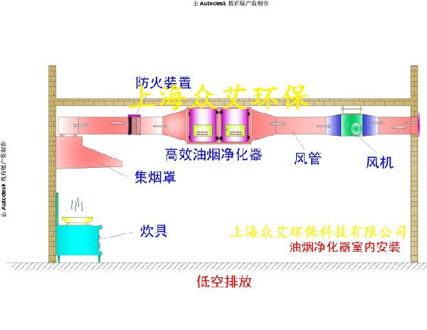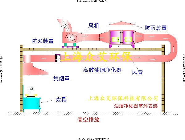 高碑店市馨云环保设备有限公司生产的油烟净化器净化流程油烟由风机吸入高压静电油烟净化器,当气流进入高压静电..