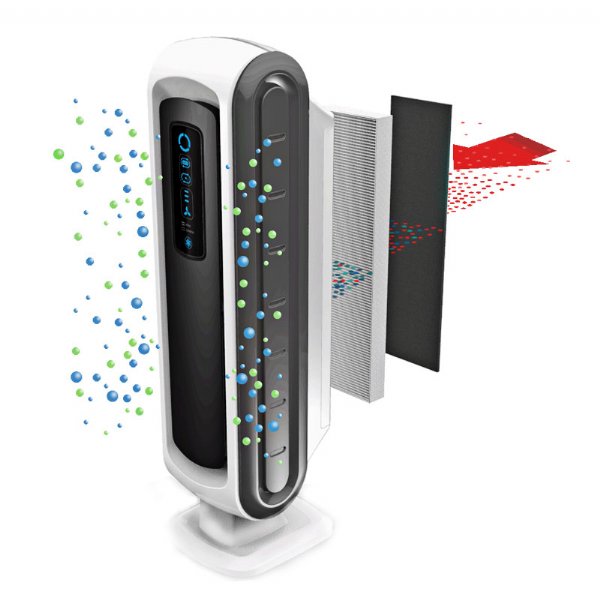 2、拥有AeraSafe抗菌处理器的TrueHEPA过滤器安全祛除空气中99.7%的直径小于0.3微米的微粒(远小于PM2.5的微粒直径),包括:花粉、豚草和其它过敏原、病毒、细菌、尘螨和真菌孢子。