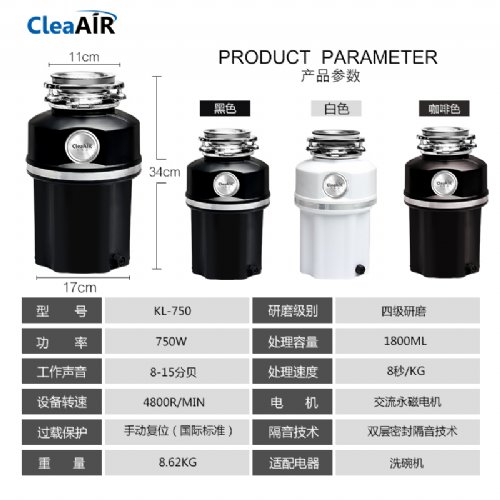 1、垃圾分类,一键粉碎:轻松解决棘手湿垃圾,懒癌患者的福音,环保家庭的标配。 2、空气开关、过载保护:设..