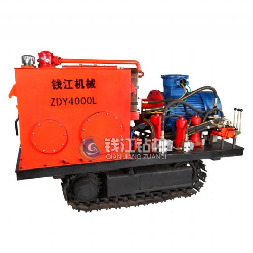 ZDY4000L型煤矿用履带式全液压坑道钻机是一种低转让速大转矩、适于大直径中深孔钻进的履带自行全液压动力头式坑道钻机。该钻机具有技术性能先进、工艺适应性强、安全可靠、移动搬迁方便等优点,主要适用于煤矿井下大直径中深瓦斯抽放及其它工程孔的施工。