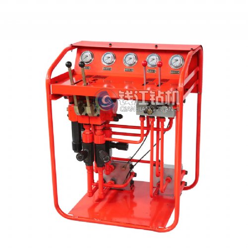 操作台是钻机的控制装置。由各种控制阀、压力表和管件组成。钻机的回转、进给、起拔与卡盘、夹持器的联动功能是靠操纵台上的阀类组合实现的。