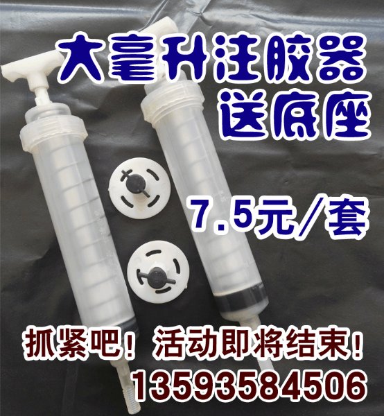 底座是与注胶器配套使用不可或缺的一部分,并且它是一次性,用量大。灌缝胶注胶器由三部分组成:注胶器系统、推进系统、固定系统组成,此工具具注胶压力功能,使用时可根据技术参数稳定。(a):裂缝表面清理,确定胶座位置。(b):封闭裂缝,粘贴胶座。(注胶压力达0.1Mpa~1Mpa以上)(c):配置树脂,并吸入注胶器。(吸胶量达50ml以上)(d):安装注胶器,注胶时旋转一下后把手,方张弹簧开始自动注胶。(e):拆除注胶器,并清理注胶器、清洗注胶器请用、工业酒精或bingtong。(f):灌缝胶注胶器是专利产品、操作方便、施工安全。该注胶器的注胶筒采用国际先进工艺操作:注胶器采用了软管内胆注胶式结构,软管属于易损件,多次使用损毁后,可单独购买,配套使用,这样解决了无内胆注胶器,一旦毁损整体都不能使用的情况,节约了成本。灌缝胶注射器底座、堵头 一次性底座 堵头 注射器堵头