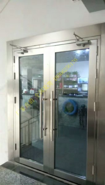 不锈钢玻璃防火门选材说明:门框、门扇采用进口或国产不锈钢板制造,内填耐温1200℃以上的优质防火珍珠岩,配套不锈钢拉手,不锈钢防火铰链、闭门器等。该类防火玻璃采用灌浆式,即将透明的防火剂液体灌入玻璃空腔内,形成胶凝体而成,产品质量达到GB15763.1-2001标准的要求。