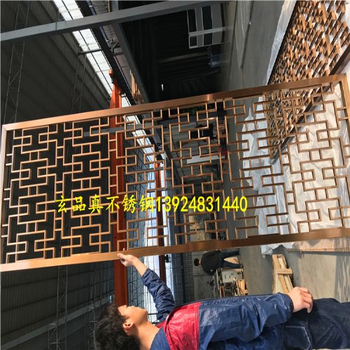 5.不锈钢屏风颜色:采用真空电镀加工,玫瑰金,古铜,香槟金,钛金,黑钛,玫瑰红,红古铜,咖啡色,青古铜等。