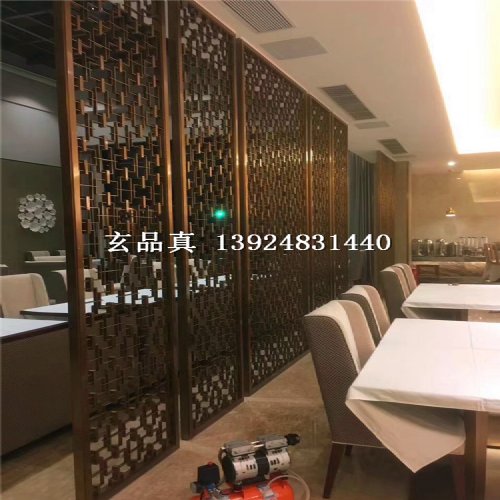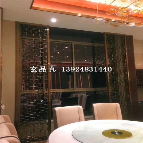佛山玄品真不锈钢制品有限公司订做商场酒店雕花屏风. 不锈钢雕花板可以采用多种几何图形,古典或现代风格,在装修中可应用于墙面,展柜制作,雕花板配合内部打灯,可打造多种艺术效果。