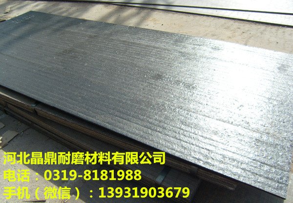 双金属堆焊复合耐磨钢板现货批发专业生产厂家河北晶鼎耐磨材料有限公司 晶鼎双金属堆焊复合耐磨钢板是在Q235普通钢板整幅钢板上形成以体积分数达到50%以上Cr7C3碳化物为主耐磨层。堆焊耐磨板具有高耐磨性、耐冲击、可变形和可焊接等性能,可像钢板一样直接进行卷曲变形弯弧、切割和打孔等加工环节,加工成工程部件以满足磨损工矿投入使用。 晶鼎双金属堆焊复合耐磨钢板的底层为低碳钢或低合金钢、不锈钢等韧性材料,体现双金属的优越性,耐磨层抵抗磨损介质的磨损,基板承受介质的栽荷,因此有良好的耐冲击性。可以承受物料输送系统中承受高落差料斗等冲击和磨损。耐磨层*使用在600℃工况下使用,若在合金层中加入钒、钼等合金,可以承受1000℃的高温磨损。 晶鼎双金属堆焊复合耐磨钢板规格全,品种多,已成商品系列化。耐磨合金层的厚度在3-20mm。复合钢板的厚度*薄为6mm,厚度不限。目前,标准耐磨复合钢板可提供1200或1450×3000mm,也可根据用户需要,按图纸尺寸定做加工。耐磨复合钢板现分为普通型、耐冲击型和高温型三种,定购高温耐磨和耐冲击型复合钢板要说明。 晶鼎双金属堆焊复合耐磨钢板可以切割、打孔、弯曲和卷曲和焊接,可以像普通钢板一样加工成各种耐磨部件。耐磨复合钢板可以用螺栓或焊接固定在设备上,更换维修方便。 称量斗耐磨衬板 高炉溜槽耐磨钢板 耐磨料车组合钢板 煤焦化排烟溜槽 港务原料厂混匀料仓底盘耐磨衬板 钢厂U形水渣槽耐磨钢板 水泥、钢厂储料仓耐磨钢板 球形卸料闸衬板 钢厂布料溜槽 磨煤机筒体衬板 耐磨落煤管 耐磨落煤筒 耐磨管道 耐磨管件 耐磨弯头 耐磨三通和大小头变径管等,耐磨风机叶轮和叶片 耐磨料斗 耐磨天圆地方(圆变方) 耐磨螺旋送料器 耐磨螺栓连接衬板 耐磨导料槽 耐磨溜槽 耐磨溜子 粗细粉分离器连接耐磨管 堆焊复合耐磨管:自动堆焊成型,耐磨层较薄(4-6mm),耐磨层有横向龟裂,对外管强度有损伤,限于直管堆焊,弯头拼焊而成,切割较难,价格高;安全冶金结合,耐磨性和耐冲击性能好,可变形和焊接,适用范围广,重量轻,安装方便,使用中不担心脱落问题。 表面喷涂耐磨管:喷涂层厚度有限,使用寿命较低,成本高,对表面处理工艺敏感,性能不稳定;适合较高温度下使用;适合现场局部补救处理,主要用于防腐处理。