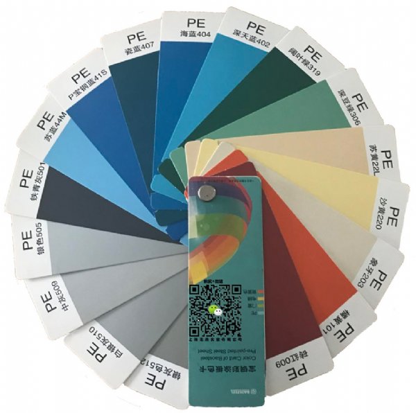 宝钢彩涂板的颜色可以按用户的要求分成很多种类,如橘黄、奶黄、深天蓝、海蓝、绯红、象牙白、瓷蓝等。