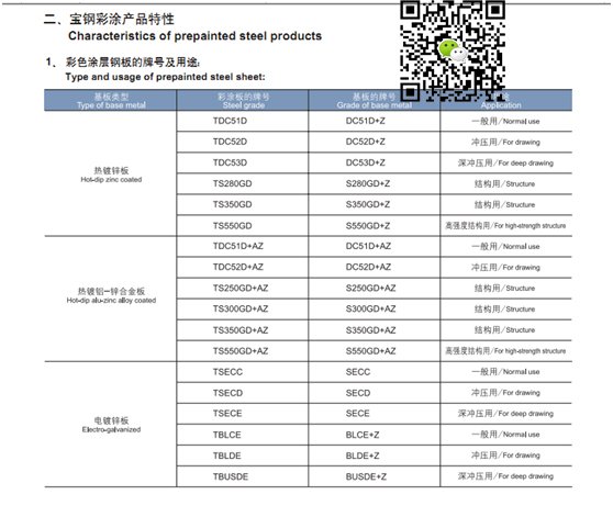 宝钢彩涂板的表面状态可以分成涂层板、压花板、印花板。