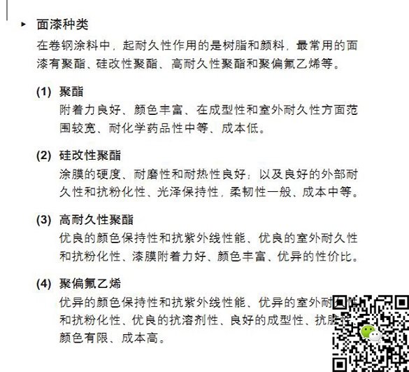 宝钢彩涂板的涂层种类可以分成聚脂、硅改性聚脂、偏聚二氟乙烯、塑料溶胶。