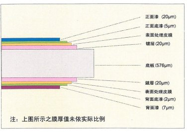 ColorFan (,采用热浸镀5%铝锌钢卷,依JIS G3317镀层量为Y27 (即双面和275g/m2Min.)。 ColorLume 采用热浸镀55%锅转钢卷,依JIS G3321 镀层量 AZ150(即双面和 150g/m2Min.)。 标准底材厚度为0.576mm,其它厚度亦可依客户要求。