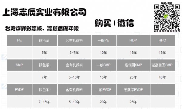 台湾烨辉彩涂板SMP硅改性涂层板,于一般环境直接曝晒下,比起本公司另三种PE彩涂嗍品更能展现优异 的耐久性,其耐用年限可达10年之久。