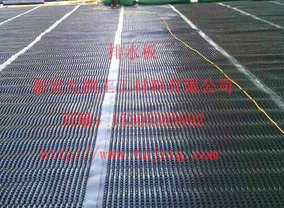 塑料排水板是一种圆锥突台或中空圆柱形多孔的塑料胶底板。塑料排水板可与土工布胶接,可有效防止泥土微料通过,从而避免通道阻塞,使孔道排水顺畅。塑料排水板可有效排出地下的水份,对土建的施工周期及构筑物的正常使用寿命具有重要的作用。塑料排水板施工方便,可取代传统的鹅孵石滤水层来排水。省时省力。塑料排水板主要应用于车库顶板绿化屋顶绿化,小区休闲绿化排水。公园,广场过街天桥及隧道地铁排水,足球场,高尔夫球场地下排水。公路铁路路基,机场火车站绿化排水,堤坝护坡层排水等领域。