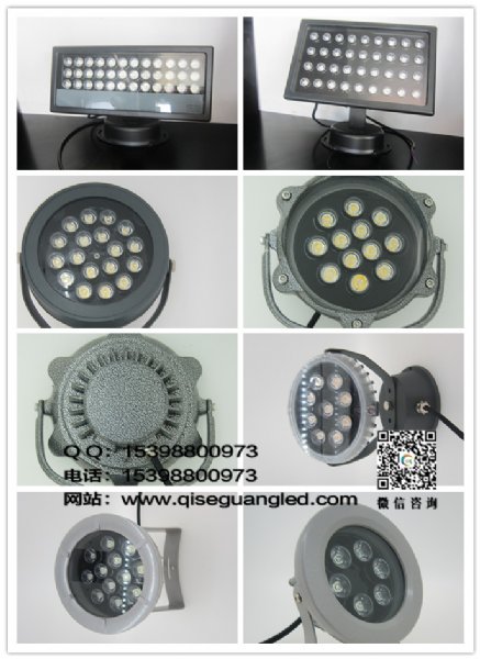 又名LED聚光灯、LED投射灯、LED射灯。LED投光灯通过内置微芯片的控制,在小型工程应用场合中,可无控制器使用,能实现渐变、跳变、色彩闪烁、随机闪烁、渐变交替等动态效果,也可以通过DMX的控制,实现追逐、扫描等效果。目前有两类产品,一类采用功率型芯片组合,另一类采用单颗大功率芯片,前者性能较稳定,单颗大功率产品结构庞大,适合小范围的投光照射,后者可以达到很高的功率,可以进行远距离大面积投光。