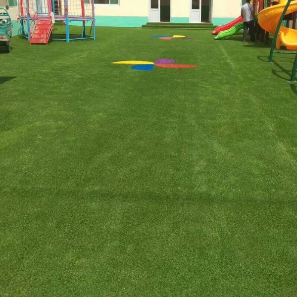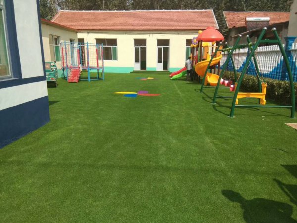 1、幼儿园人造草坪维护简单,维护保养费用低,用清水冲洗即可去除污垢,且具有不褪色不变形的特点。