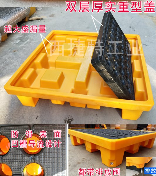 2.不仅适合55加仑圆桶的防泄漏储存,也适合方形IBC集装桶的二次防泄漏储存,还适合化学试剂瓶、蓄电池的防泄漏防溅溢储存和分装。