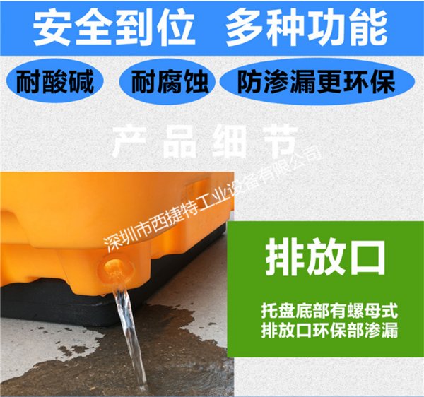 6、防泄漏托盘可配合叉车使用移动方便处理泄漏方便。