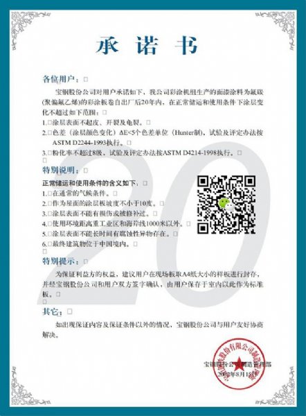 - 宝钢彩涂板,采用热镀锌150克镀铝锌基板