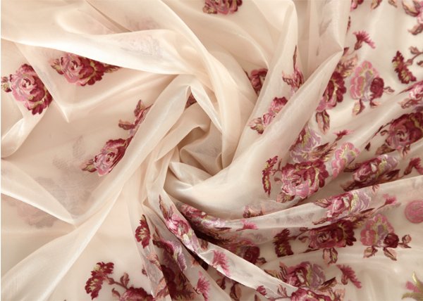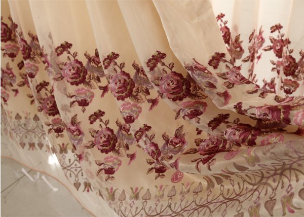 本窗帘产品命名“甜蜜梦幻窗纱”采用纱胚和高针数刺绣,是一款以玫瑰为主题元素的婚庆产品,玫瑰花一直代表着爱情的见证品,它是女性气质尊贵的象征。此款产品以玫瑰花为主装饰图案,让产品更显灵动。营造出十足的时尚感、女人味。颜色上分粉红、紫色,颜色上大胆热烈,使产品更具跳跃性,增强视觉冲击力;粉色柔和温婉,满足消费另一种选择。