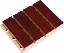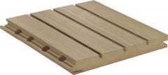 槽木吸音板是一种在密度板正面开槽,背面穿孔的狭缝共振吸声材料。槽木吸音板对吸声频谱选择性很强,对中低频有很好的吸声性能。