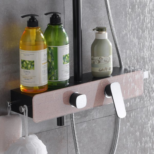 - 家用黑色恒温淋浴花洒套装 浴室花洒厂家批发