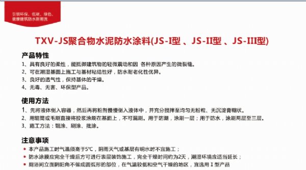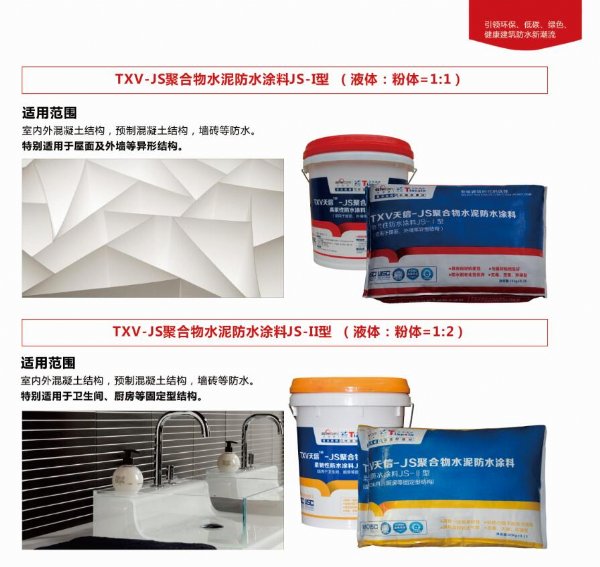 TXV-JS聚合物水泥防水涂料 高柔性防水涂料JS-I型 液体:粉体=1;1