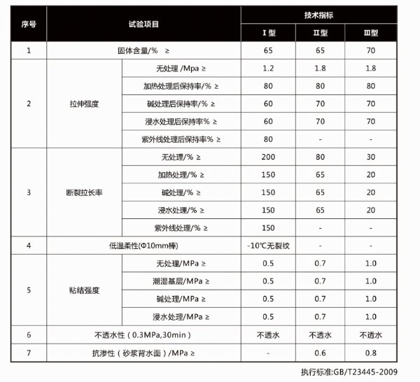2.可在潮湿基面上施工与基材粘结性好,防水耐老化性优异。