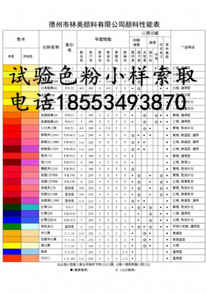 主营业务:耐晒黄G、耐晒黄10G、联苯胺黄G、永固黄G、永固桔黄G、3132大红粉、808大红粉、耐晒大红、耐晒艳红
